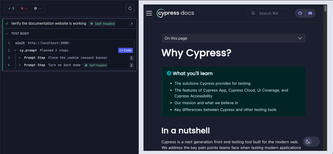 In this post, we will walk through why self-healing matters, how cy.prompt performs it, and the visibility Cypress gives you for every step.