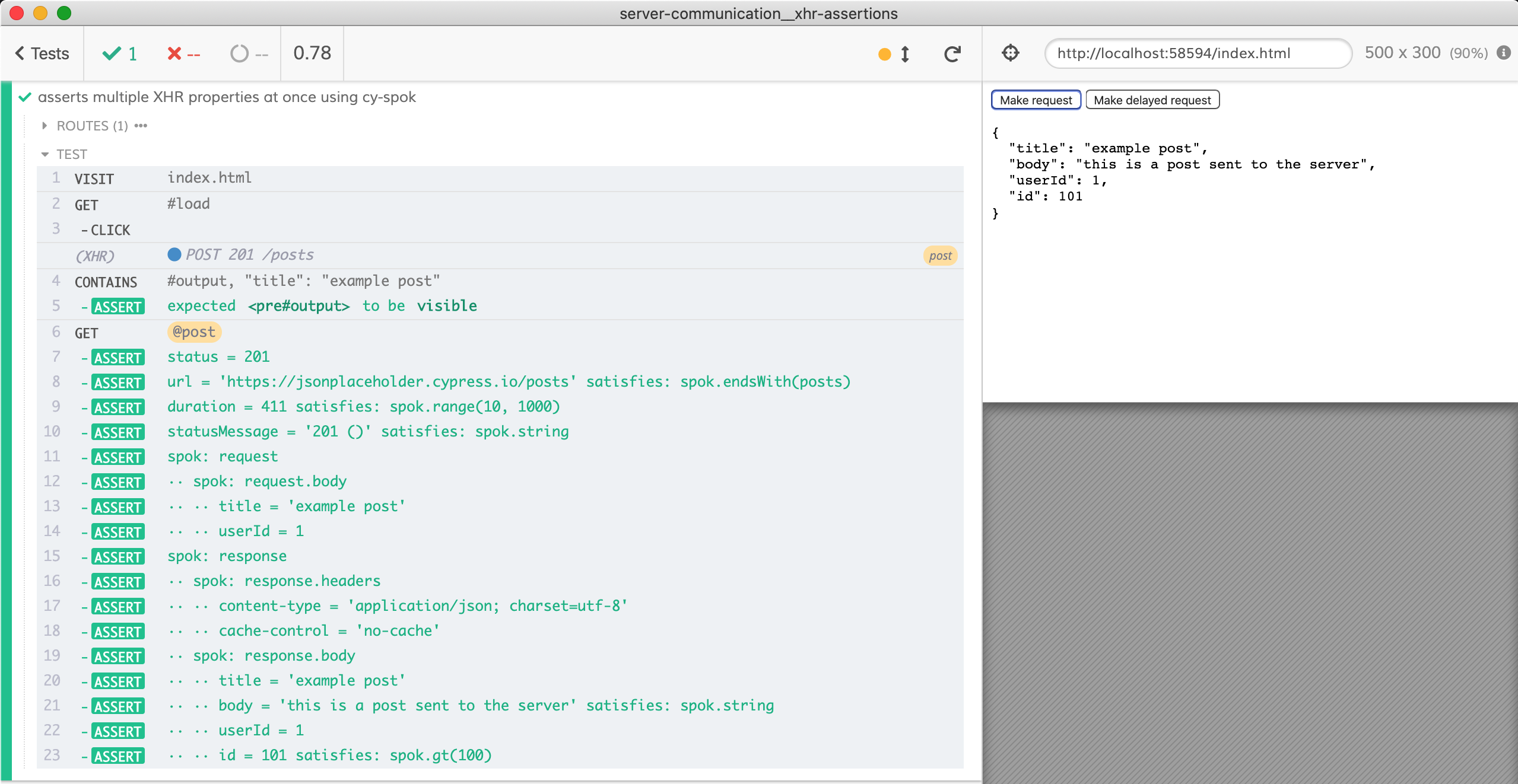 cy.contains('#output', '"title": "example post"').should('be.visible')