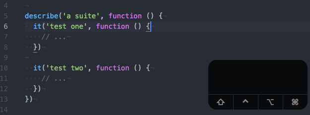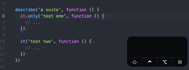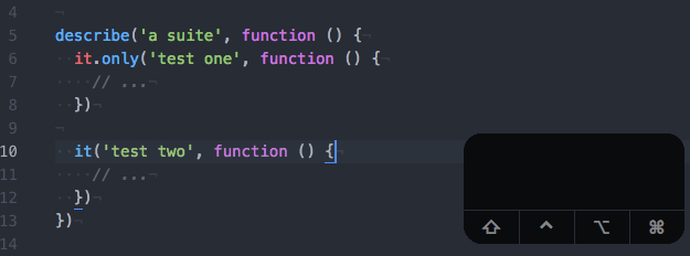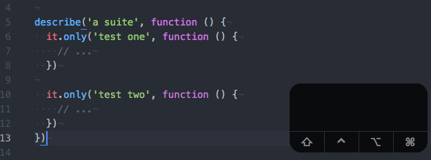 Want to add a .only to a test? Put your cursor anywhere on the line with the it you want to focus on, type the keyboard shortcut, and there it is.