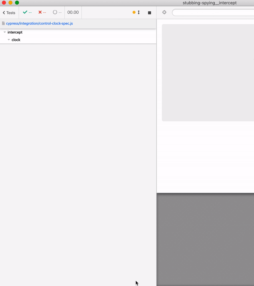Cypress has commands to control the application's clock during the test. We can "freeze" the clock and all time-related functions like setInterval, setTimeout using the command cy.clock. Then we can manually advance the clock using the cy.tick command. Here is our much faster test: