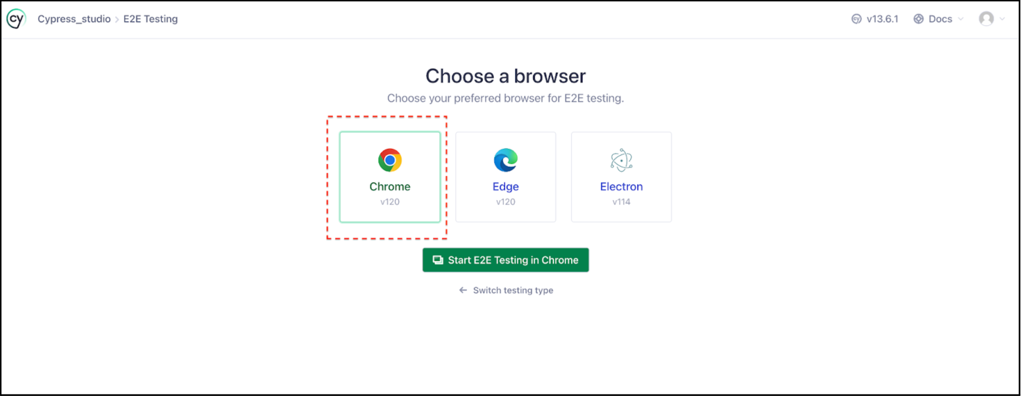 Select E2E Testing and select Chrome browser
