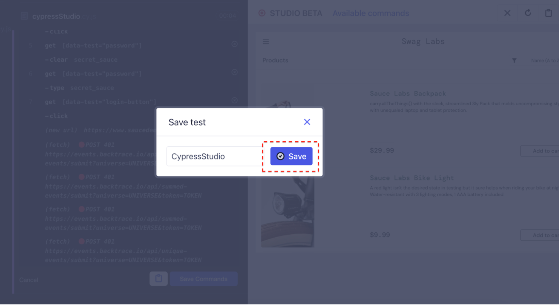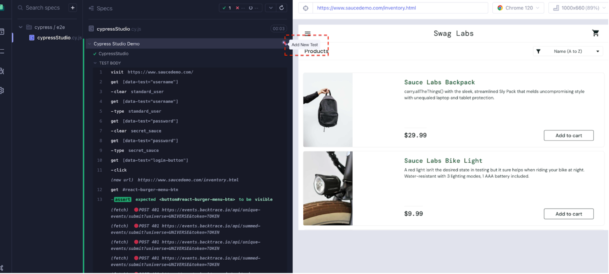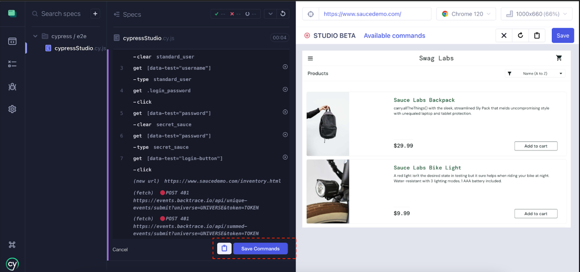 With Cypress Studio's 'Add Commands to Test' option, you can seamlessly introduce commands into an existing test script. In the preceding example, we demonstrated a scenario where we logged into the site https://www.saucedemo.com/