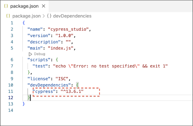 Before configuring the Cypress Studio, the first step is to install Cypress on your machine. Use the command npm install cypress --save-dev OR yarn add cypress --dev.