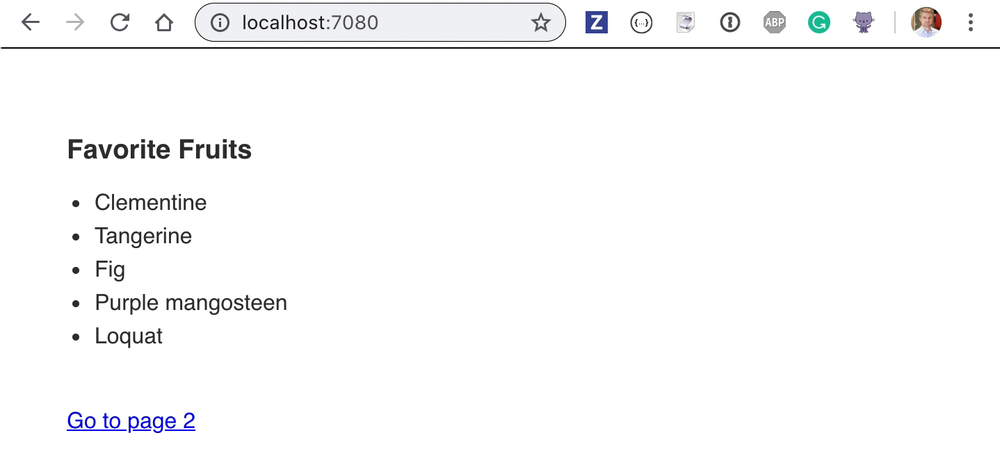 This application presents two challenges to end-to-end tests. First, the data is random - every time the test visits the page localhost:7080 a new list of fruits is returned, which complicates the assertions. Second, the application shows a loading indicator while the Ajax call continues. How would you test the loading behavior?