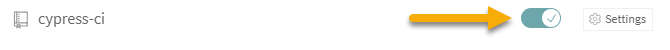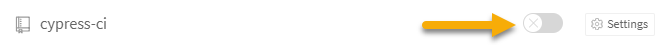 Click on your profile picture in the upper right to go to the settings page. Find your GitHub repository (cypress-ci in my case) that you want to enable in Travis CI and click the toggle to enable it.