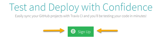 When you navigate to https://travis-ci.org you will need to log in with your GitHub credentials by clicking the “Sign Up” button