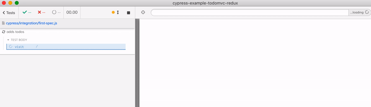 })The code cy.get('.todo').should('have.length', 1) is executed again and again, until the assertion passes or times out. You can see the blue spinner for both the command and the assertion in the Command Log. Again and again the test command queries the DOM for all elements with class "todo", and then runs the assertion "there should be 1 element in the list of found elements". The assertion throws, and it goes back to selecting the elements again.
