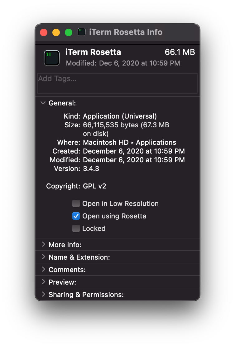 - Right-click on the Terminal/iTerm Rosetta app in Applications