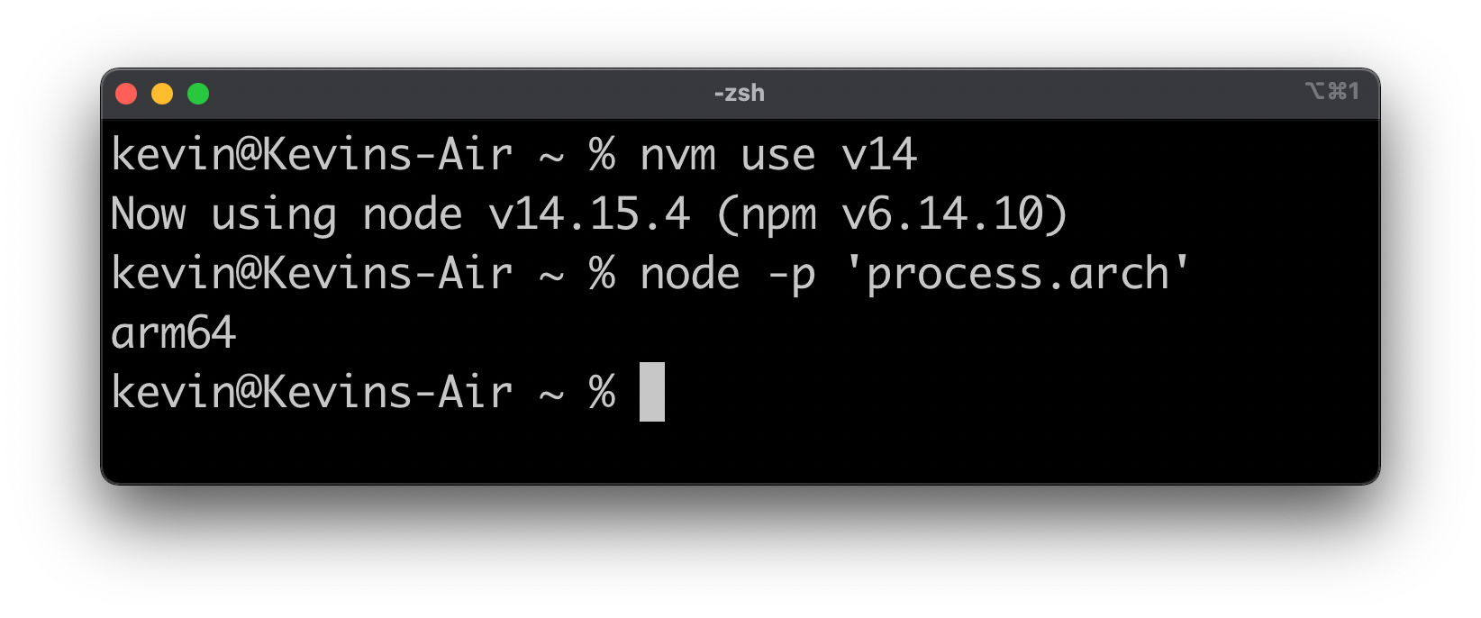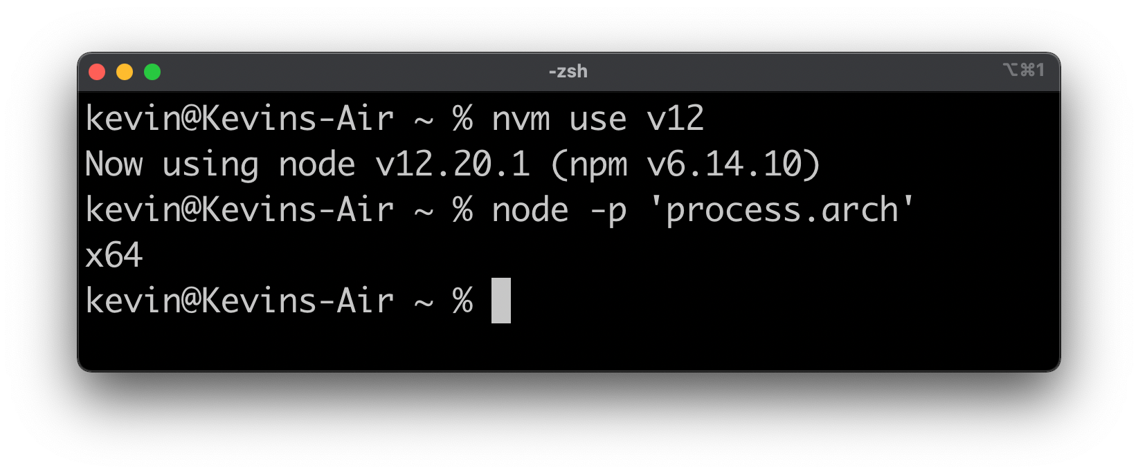 The Node Version Manager (nvm) is a "version manager for node.js, designed to be installed per-user, and invoked per-shell". We can install an x64 and arm64 within nvm to make switching between those easy.