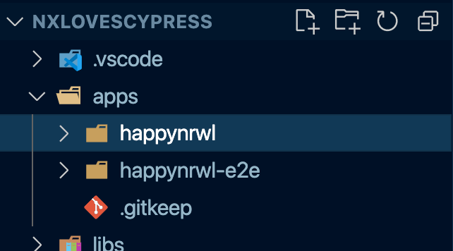 happynrwl-e2e is the Cypress application that got generated for our happynrwl React app.
