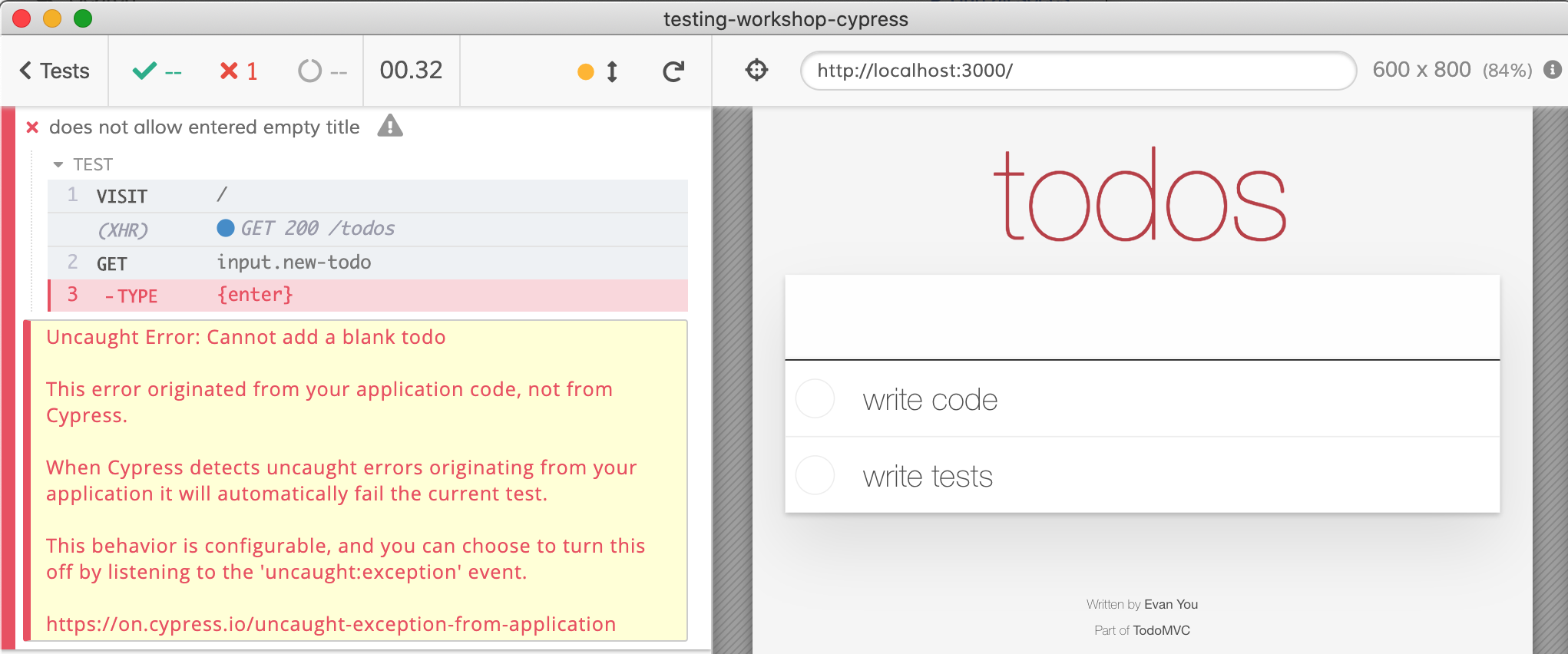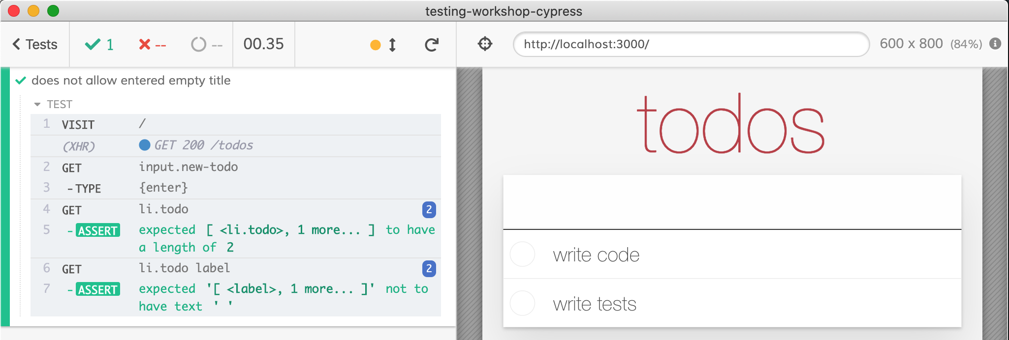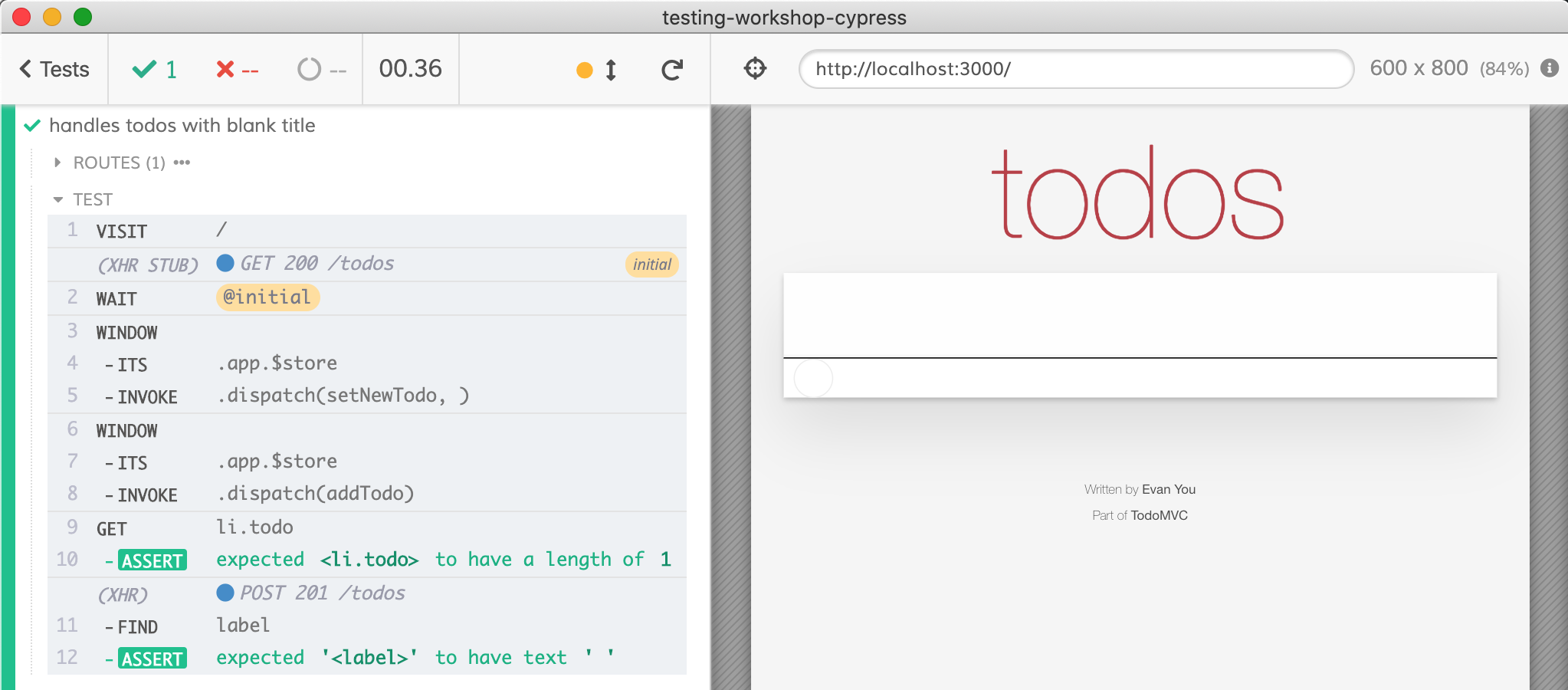 }Note: you can find the application source code and example tests described in this blog post in the testing-workshop-cypress repository.