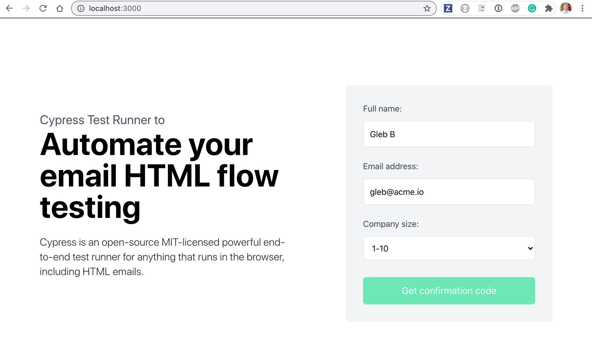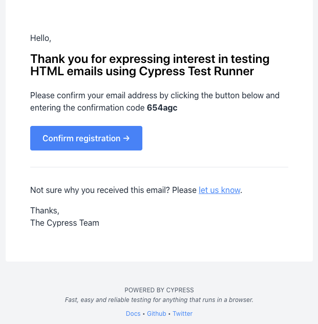Note: you can find the source code shown in this blog post at cypress-email-example and watch a video explaining the testing process here.