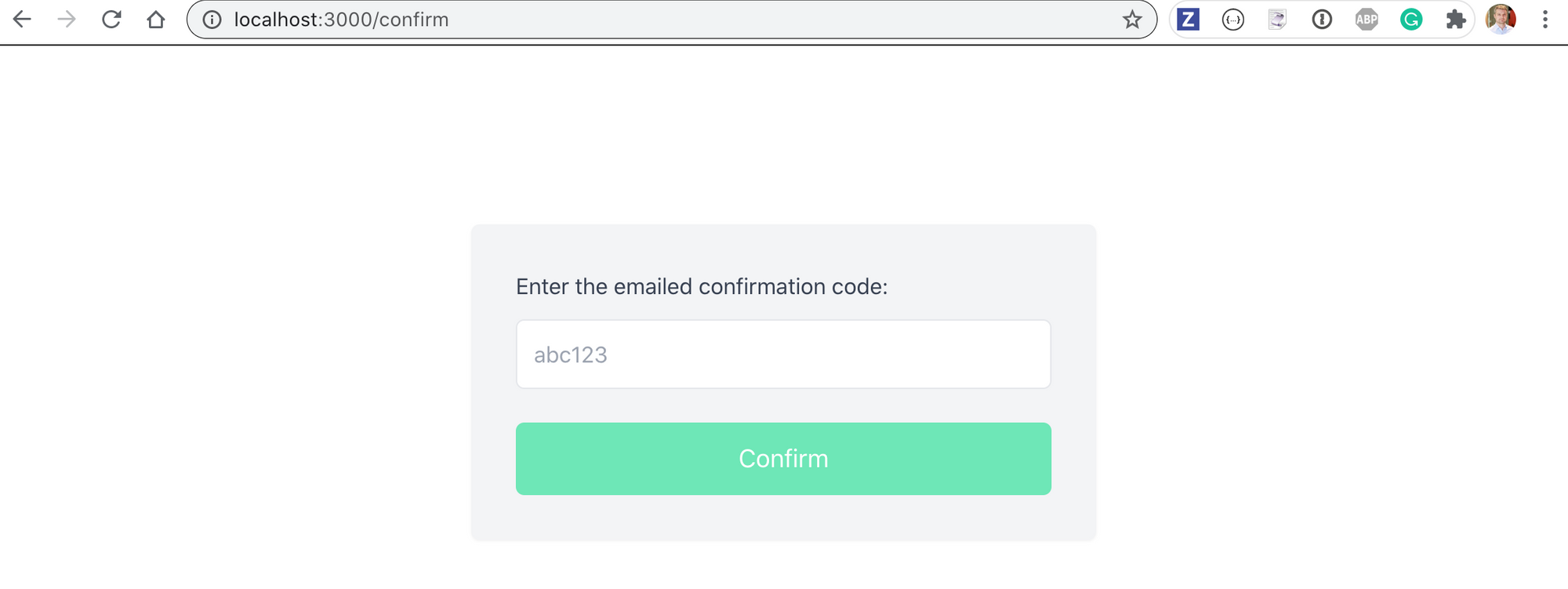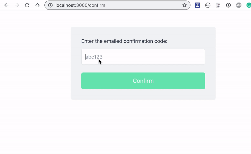 The user must enter the sent code into the "confirm" page.