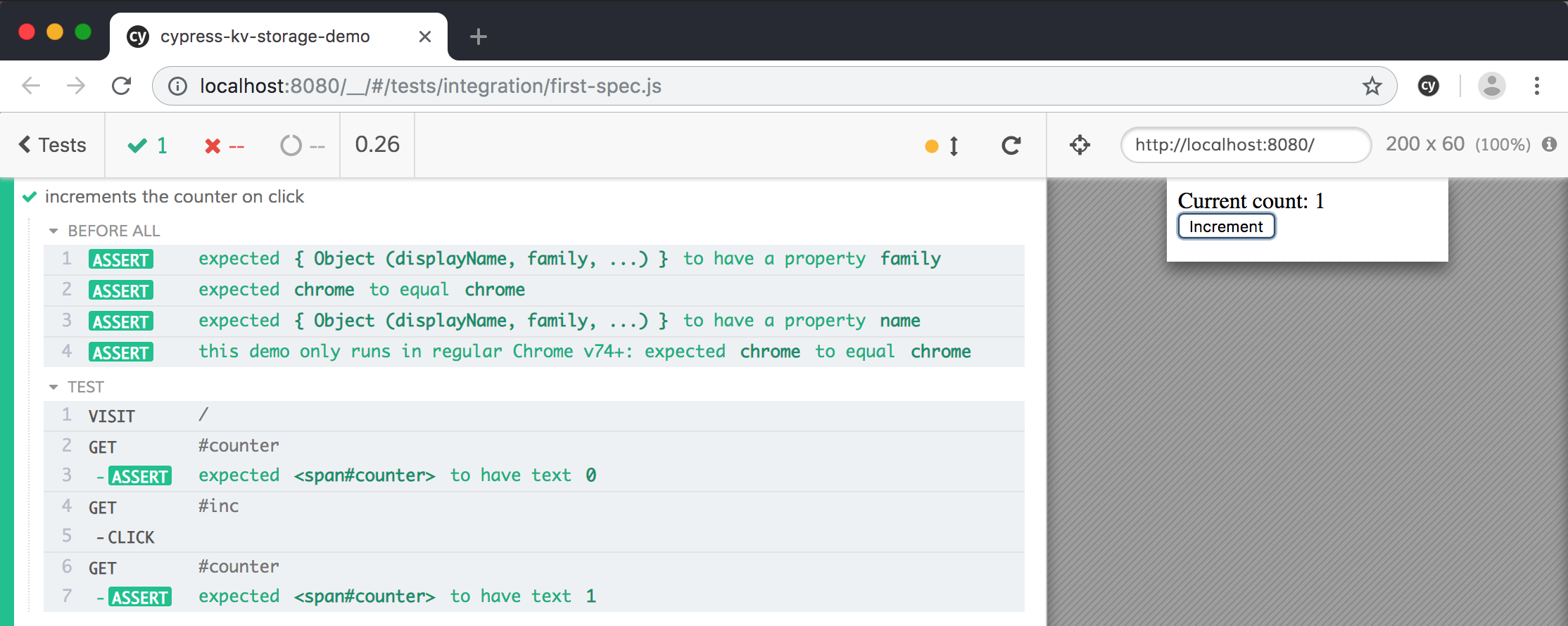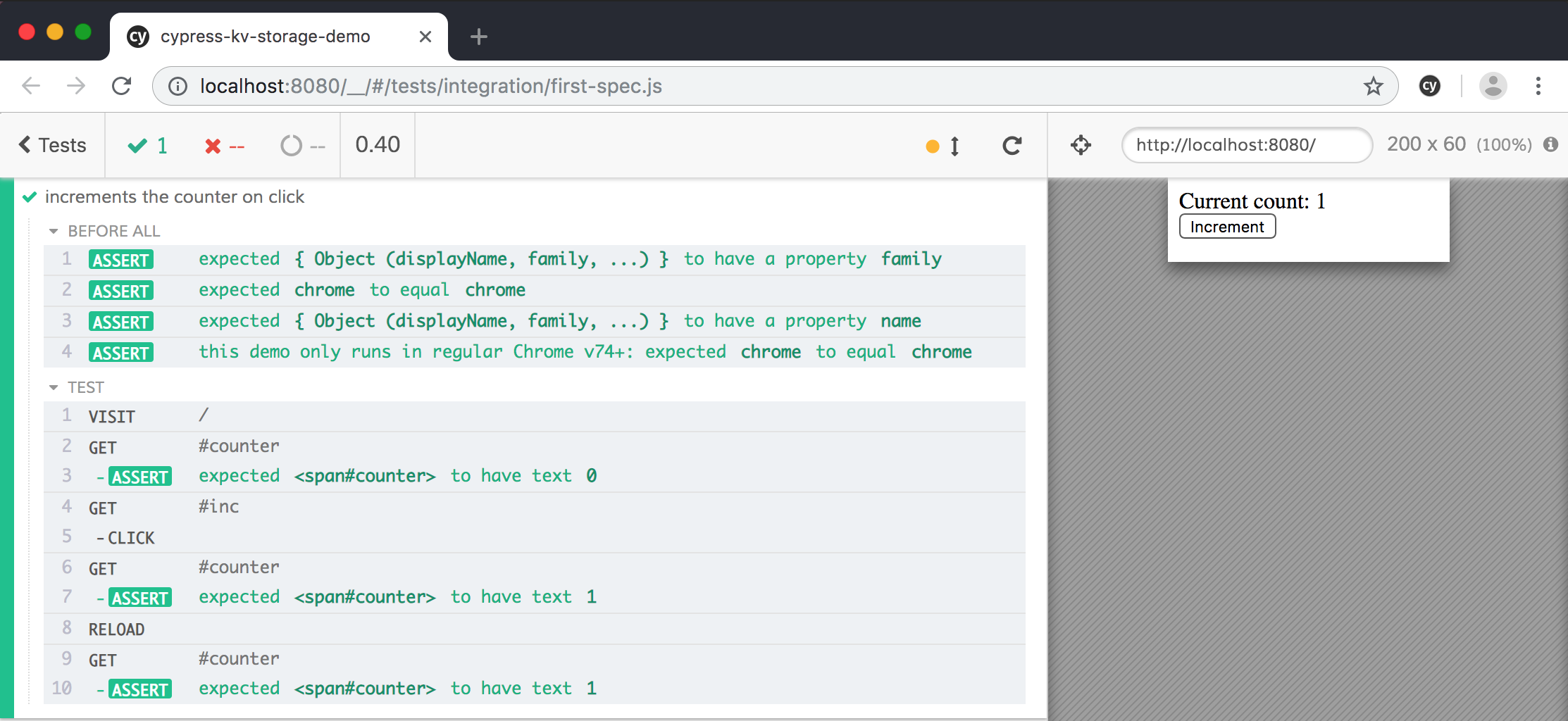 Note: you can find the source code for these example tests in the bahmutov/cypress-kv-storage-demo repository.