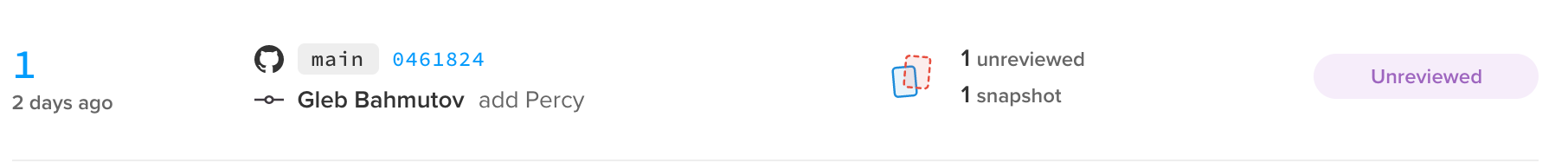 As soon as we run Percy for the very first time in this project, it notices a new visual snapshot - we need to verify the image to accept it (which turns the failing Percy status check into a passing one).
