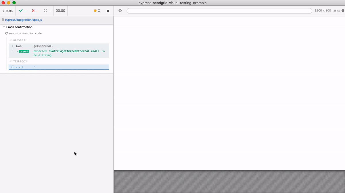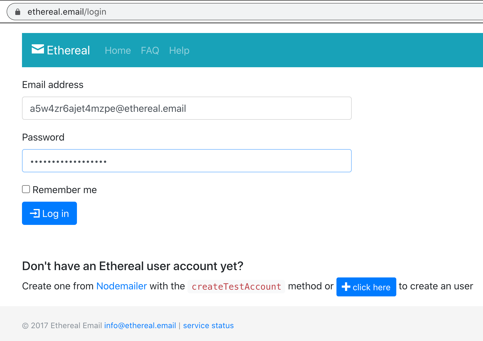Every time we call the SendGrid API it sends an email to the to recipient. Our test needs to "catch" these emails. Luckily there is a free Ethereal email service with a great programmatic API we can use.