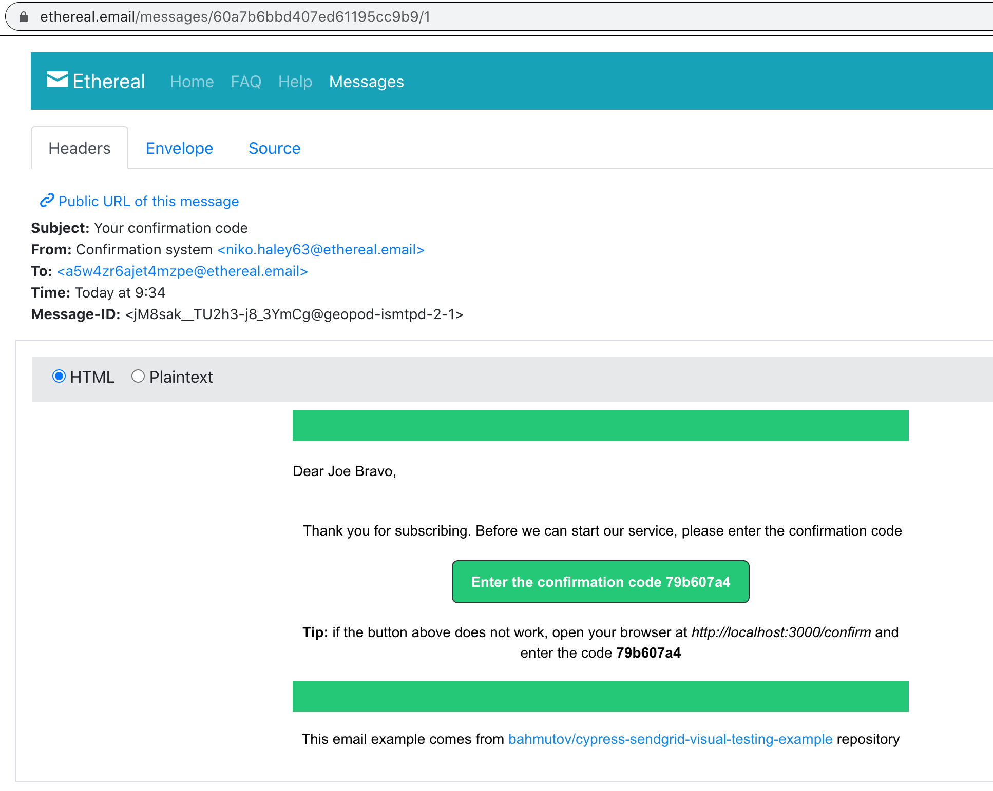 - "Full Testing of HTML Emails using SendGrid and Ethereal Accounts" formats the email HTML text and then sends it using a 3rd party service to a temporary test account