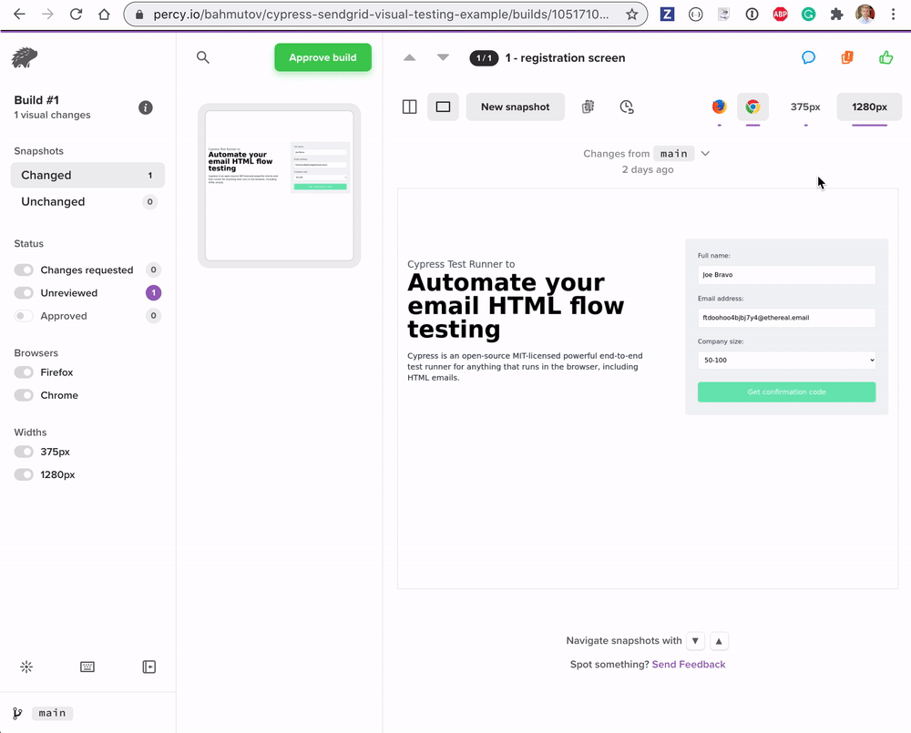 Note: you can find the source code for this blog post in the repository cypress-sendgrid-visual-testing-example, and see the visual snapshots at its Percy page.