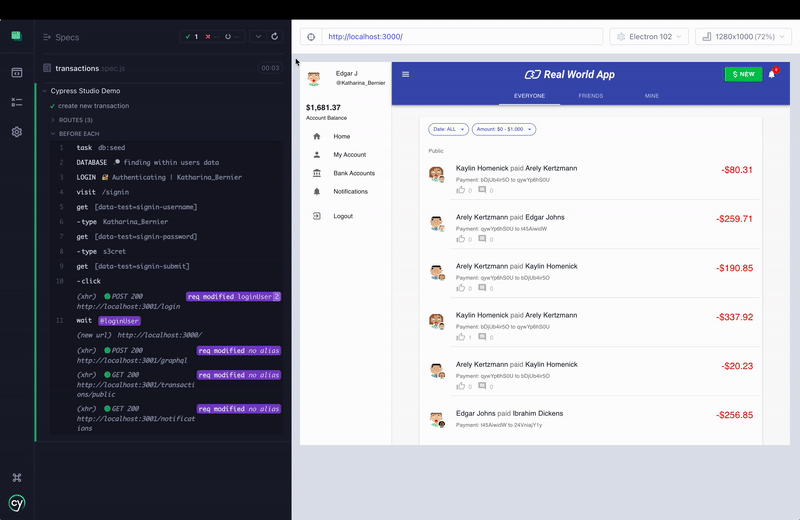 Cypress Studio provides a visual way to generate tests within Cypress, by recording interactions against the application under test. It is especially useful for existing code bases, where you would like to quickly and easily add some test coverage — all visually, without needing to write a single line of code!