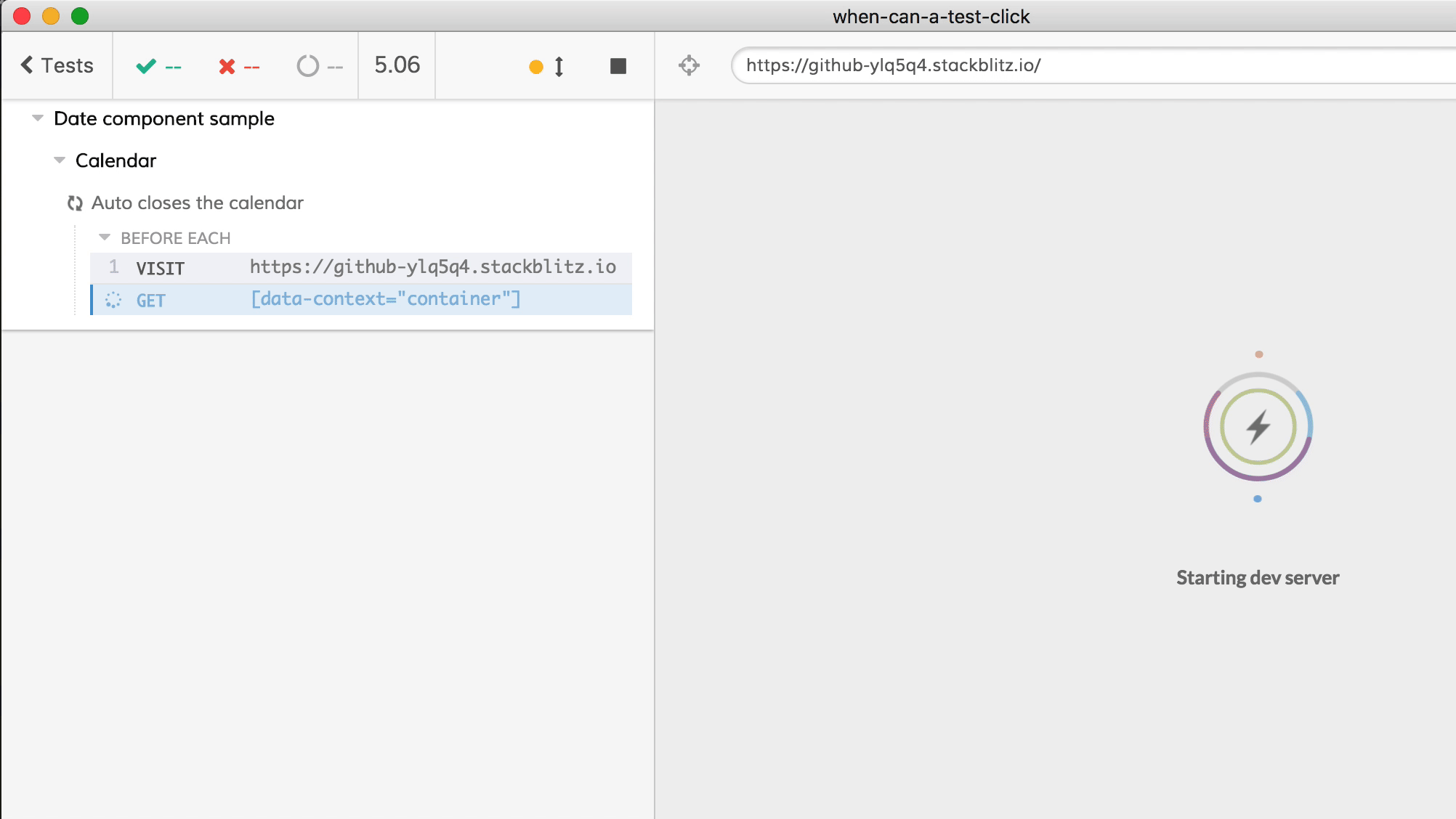 In our case, there was probably an event listener already attached and ready to process the actual click on a date element (that’s why the date is changing, even if the modal stays open), but no event listener has been attached yet to close the modal. Our test runner is getting ahead of the web application in this particular case.
