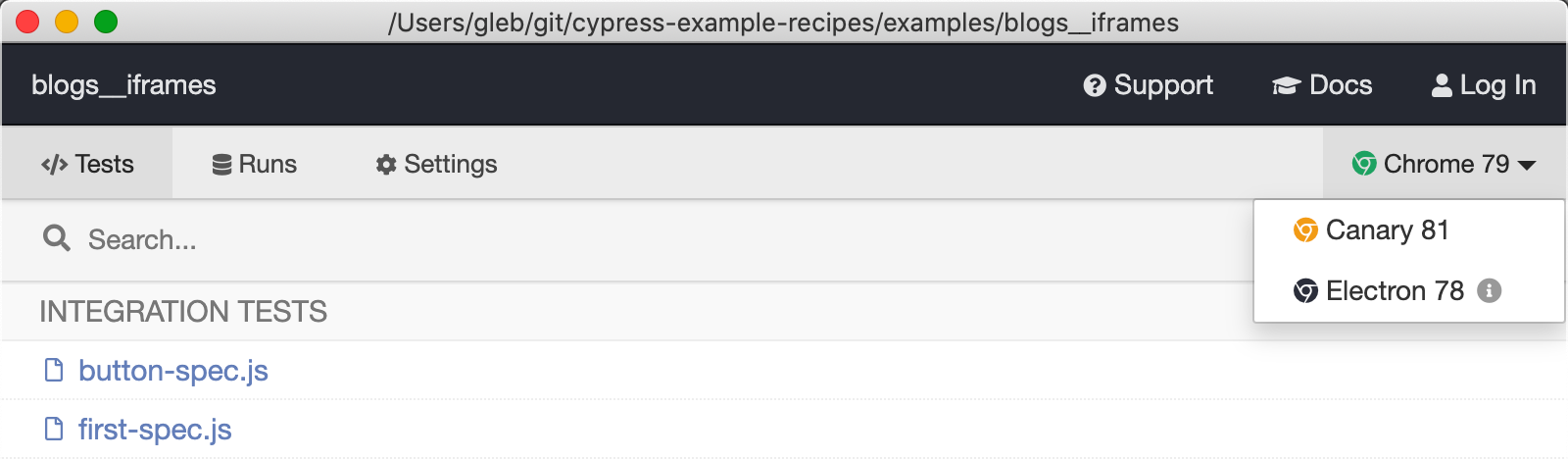 Before we proceed, I would like to confirm that our code works even if the 3rd party iframe is slow to load. I will switch Cypress that by default uses Electron browser to run the tests in Chrome browser.