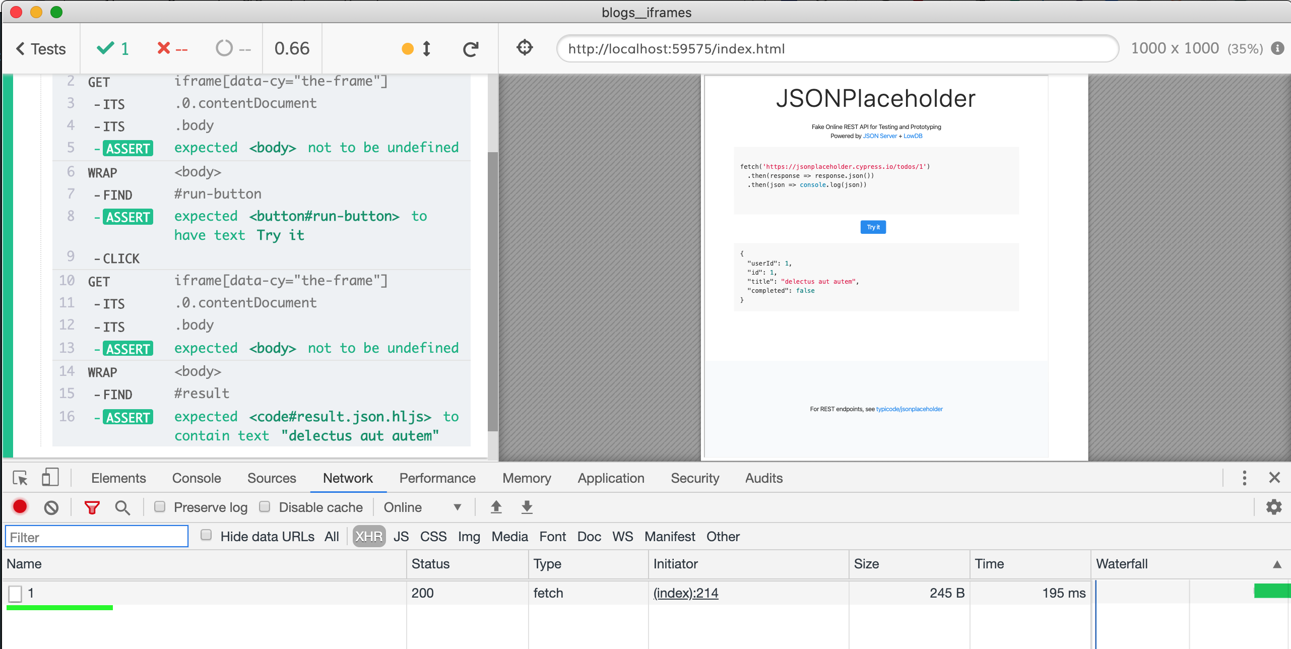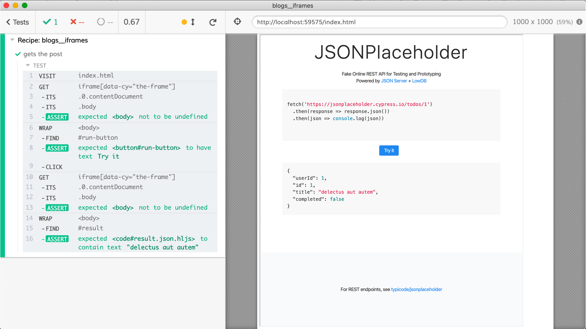 getIframeBody().find('#result').should('include.text', '"delectus aut autem"')